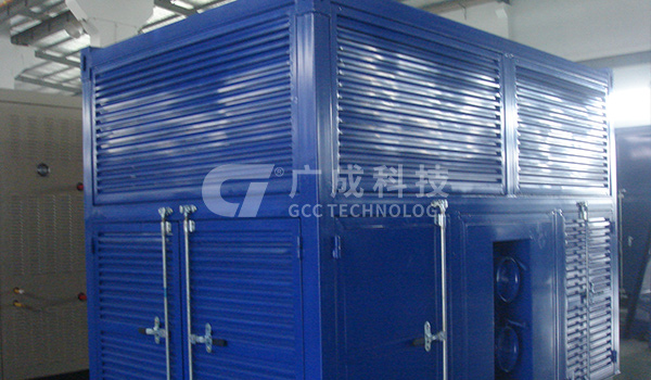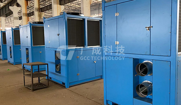 設(shè)備由壓縮機(jī)、蒸發(fā)器、冷凝器、轉(zhuǎn)輪、再生加熱器、風(fēng)機(jī)等組成的復(fù)合型除濕機(jī)