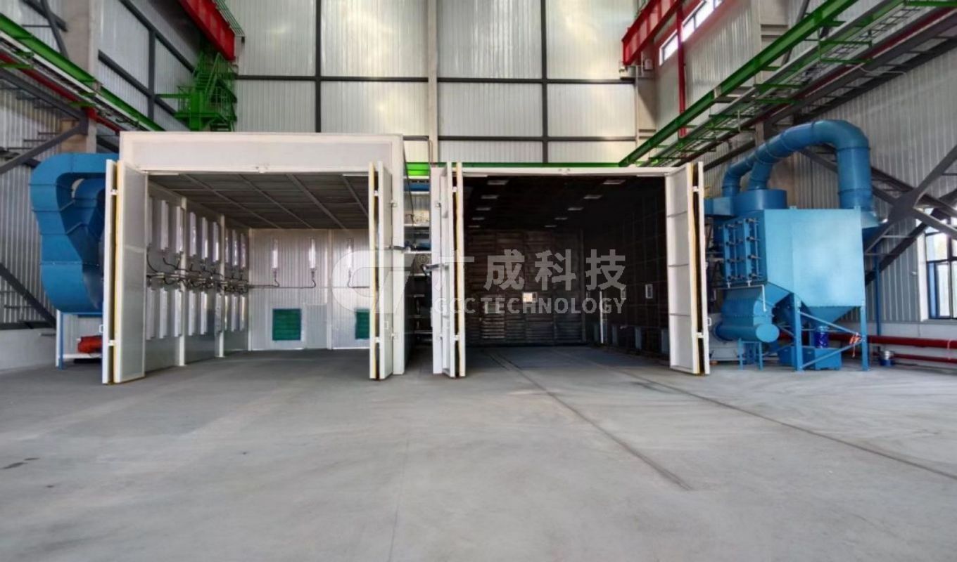 配套打磨房2套、噴漆房2套、烘干房1套、有機(jī)廢氣處理設(shè)備2套、三級漆霧處理系統(tǒng)1套、電動平車6套等